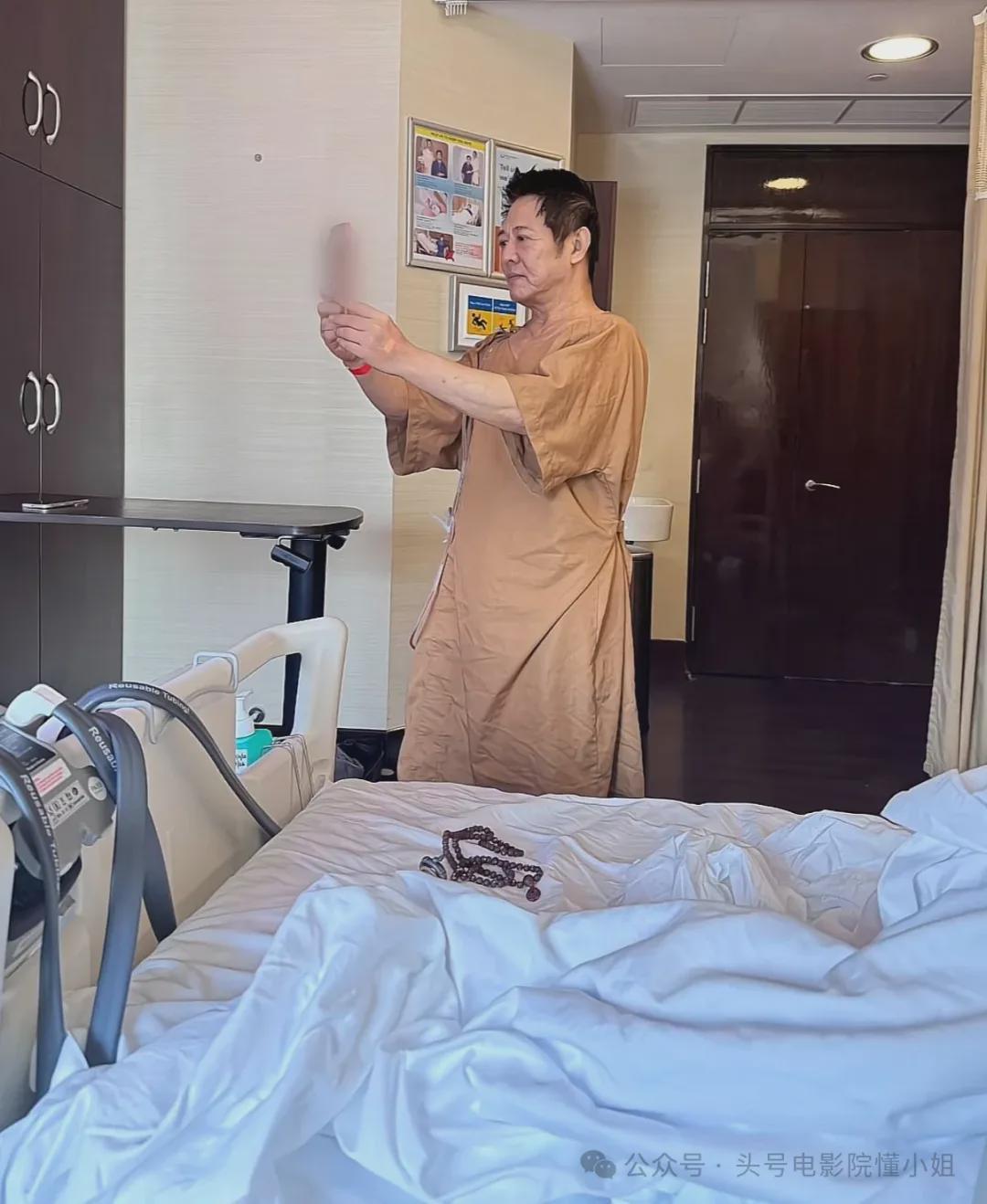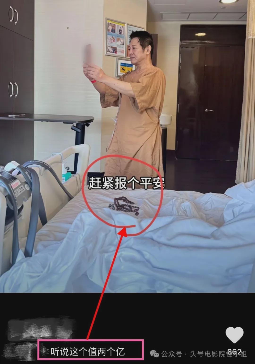 所以,刚刚手术完,还躺在病床上的李连杰就迫不及待把佛珠手串戴上了。